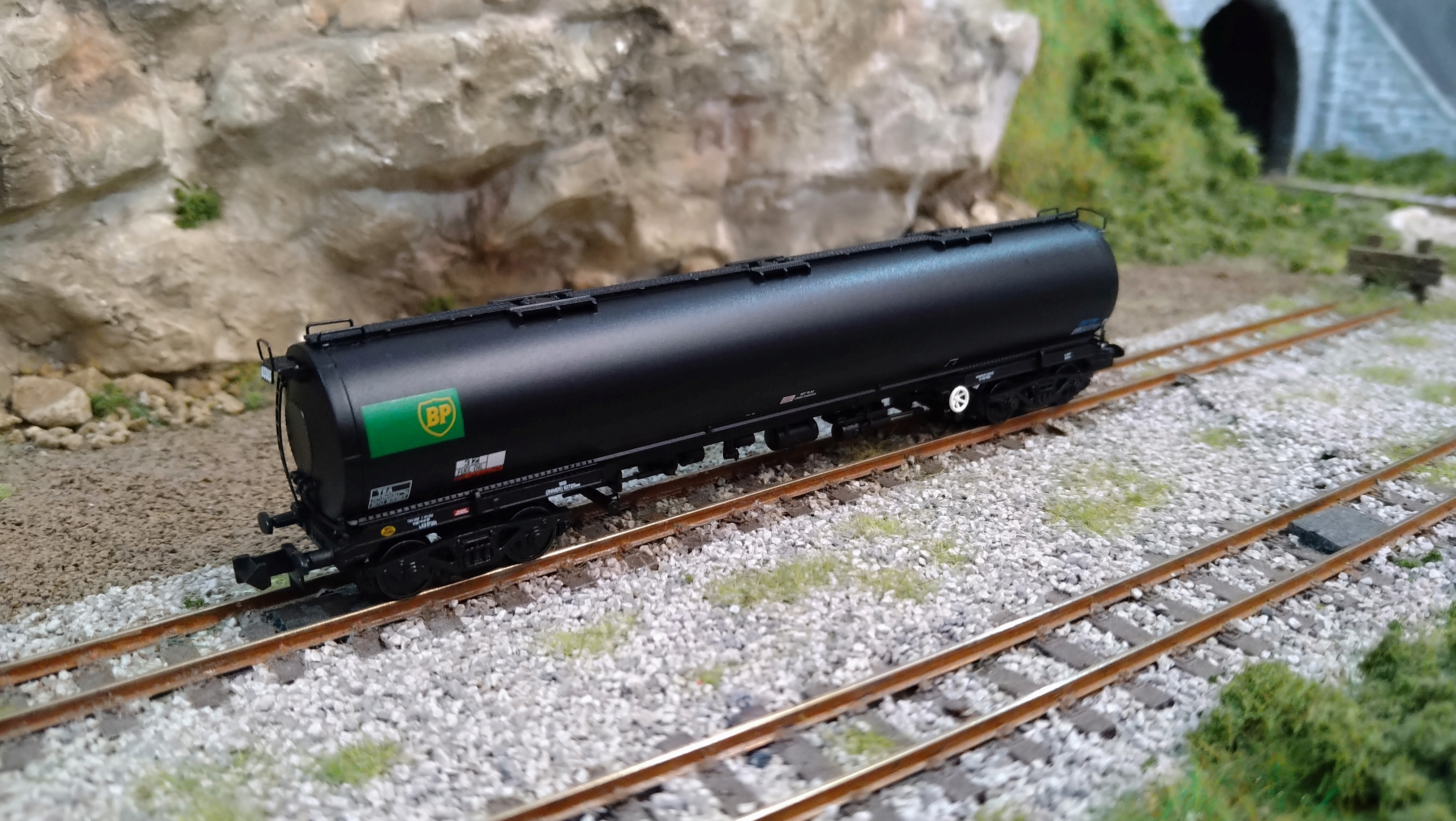373-566 GRAHAM FARISH BR 102T TEA BOGIE TANK WAGON ‘BP’ BLACK 83383