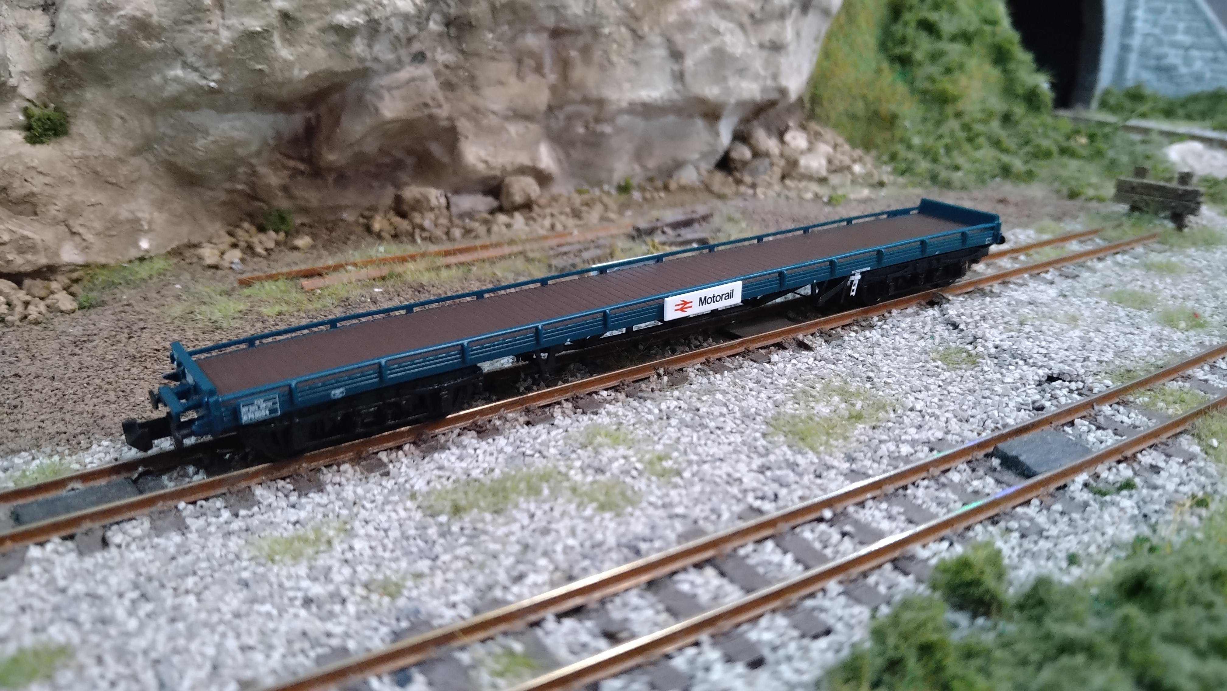 377-401A GRAHAM FARISH BR FVV CARFLAT WAGON MOTORAIL BLUE B745054