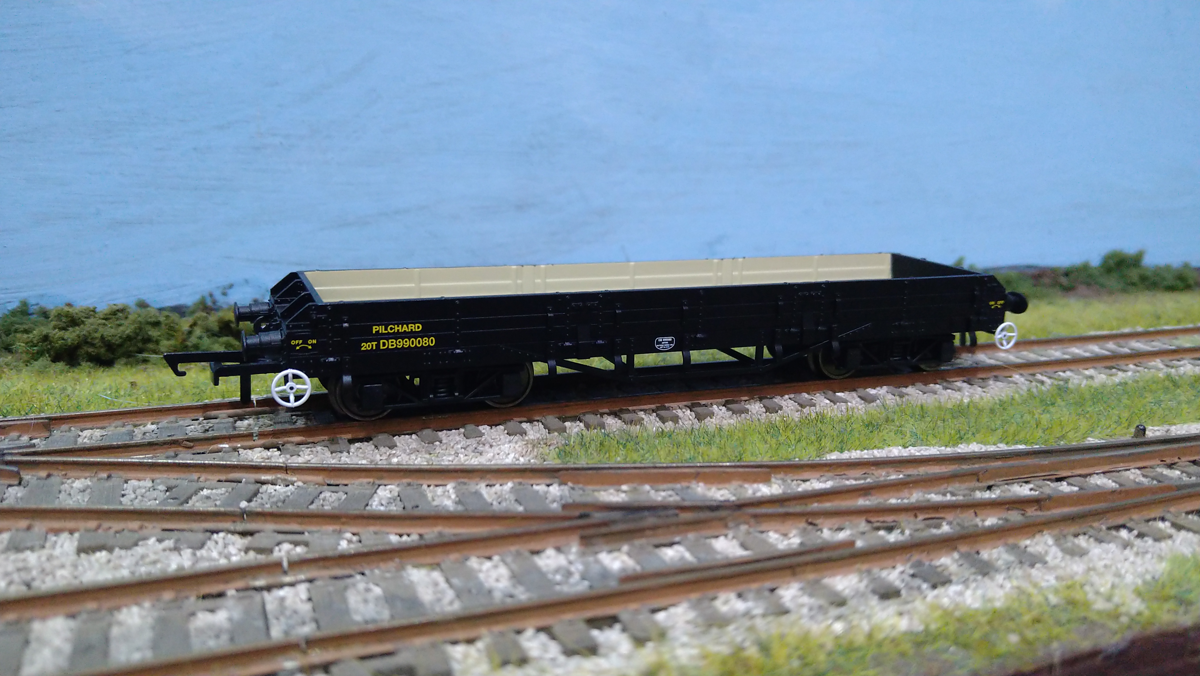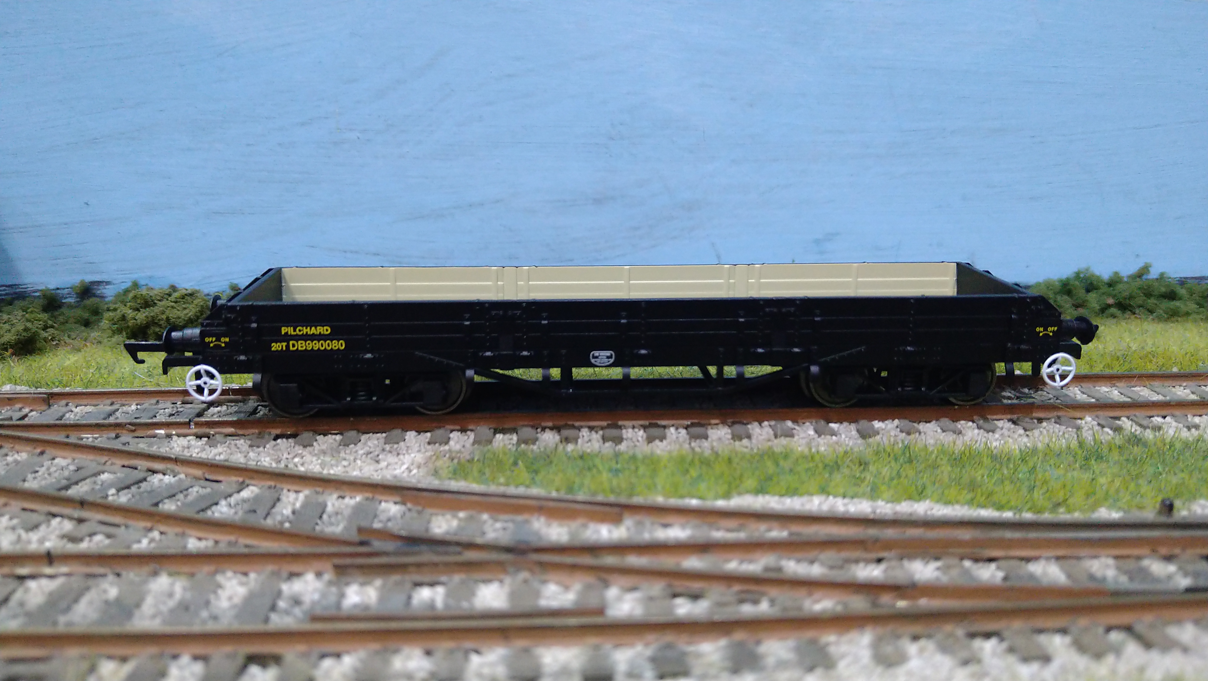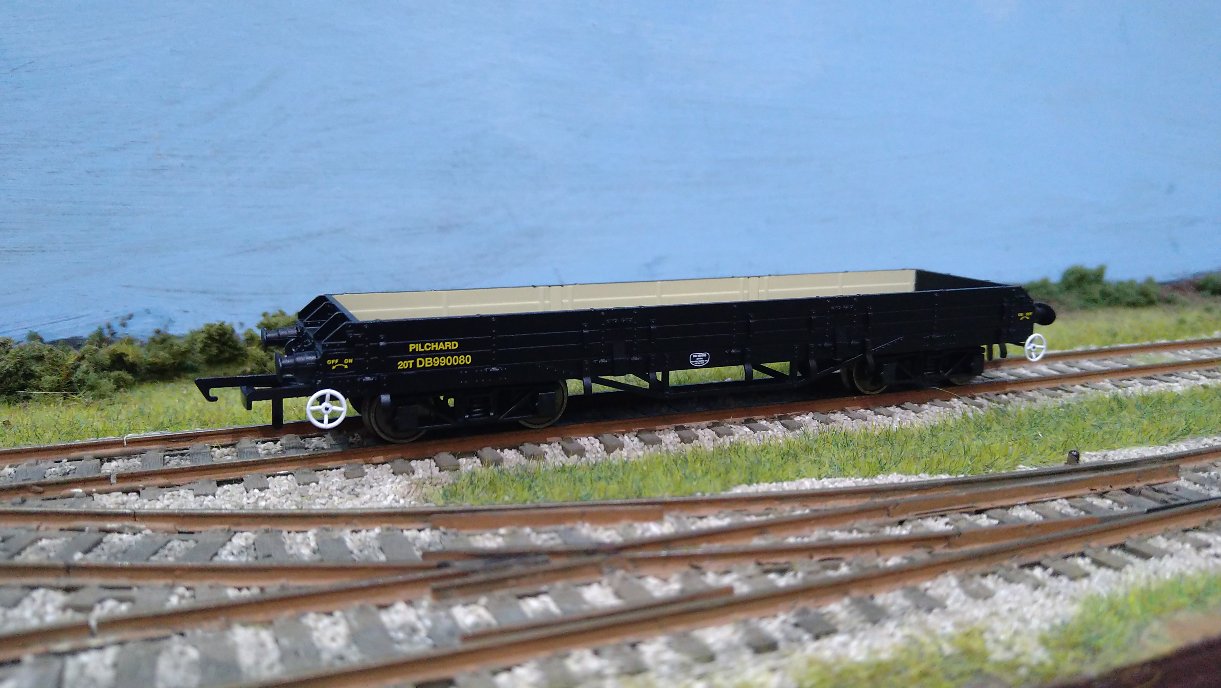 OR76PIL006BW OXFORD RAIL BR TOPS PILCHARD OPEN WAGON DB990083 WEATHERED