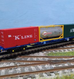 TT6032 HORNBY TT:120 TOUAX KFA CONTAINER WAGON WITH 3x 20 CONTAINERS